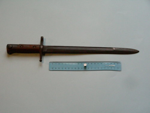 Lama dritta, con sguscio fino al controfilo su entrambi i lati. Guardia ad anello. Impugnatura con sistema di aggancio a pulsante; guancette con spinotti passanti.