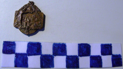 Di forma rettangolare con 2 semicerchi sui lati lunghi inferiore e superiore. Sul recto, sul semicerchio superiore decorazioni floreali e stella raggiante. Al centro da sinistra figura allegorica femminile dell'Italia turrita a figura intera con braccio proteso sulla veduta del porto di Tripoli. Sul semicerchio inferiore aquila coronata ad ali spiegate. Sul verso, sul semicerchio superiore decorazioni a motivi floreali. Al centro scritta in ovale. Sul semicerchio inferiore scudo sabaudo coronato.