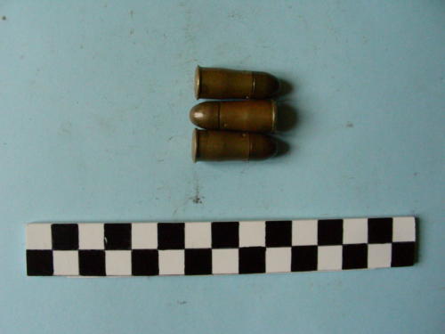 Bossolo di forma cilindrica con fondello; proiettile di forma conica con punta arrotondata.