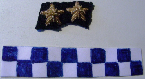 Su panno nero, a forma di stella convessa a cinque punte in canottiglia dorata con piccola bomba centrale da cui dipartono0 cinque raggi.