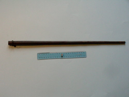 Conico, a sezione tonda, con bottone sferico al puntale e ribattino alla bocchetta.