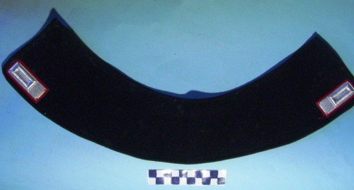A forma di colletto di colore nero. Sul bavero sono cucite due mostrine con ricami di colore argento su fondo rosso.