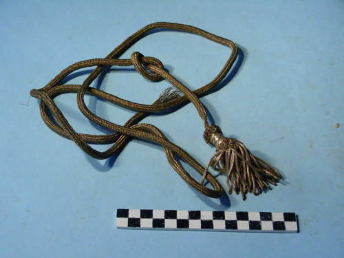fili dorati intrecciati terminanti con nappina decorata e canottiglia.
