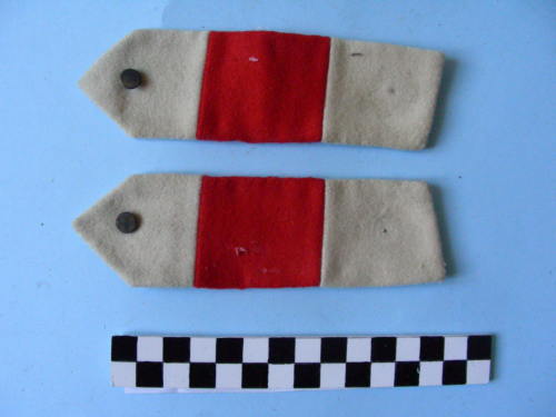 A forma trapezoidale, di color panna e rosso, con bottoncino circolare sulla punta.