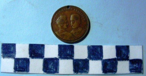 Di forma circolare. Sul recto, al centro, in rilievo, i busti affrontati di Elena di Montenegro, a destra e di Vittorio Emanuele III a sinistra, in divisa. Iscrizione lungo la corona. Sul verso, al centro, in rilievo gli stemmi coronati ed affiancati di casa Savoia e del regno del Montenegro tra rami di quercia e d'alloro legati da nastri. Iscrizioni lungo la corona.