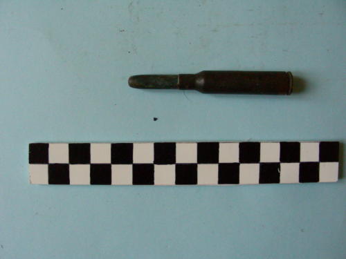 Di forma cilindrica, con fondello e restringimento all'apice del bossolo e proiettile conico.