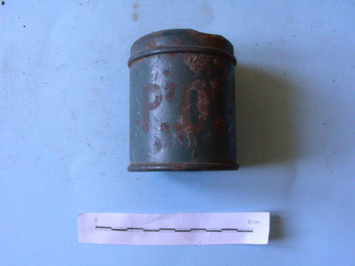 Testata esterna in lamiera, di forma cilindrica, con foro filettato per l'inserimento del detonatore e saldato lateralmente.