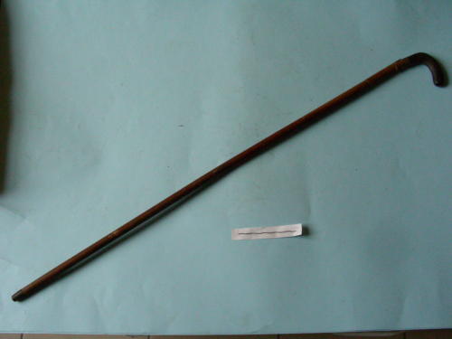 Impugnatura ricurva, puntale metallico arrotondato. Anima con lama a sezione quadrangolare, priva di filo, con punta al centro; decorazioni floreali ad acido al tallone per il primo terzo della lama. Decorazioni geometriche al manico.