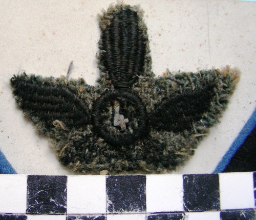 Su una base di colore grigio scuro bomba con fiamma verticale ed ali di aquila spiegate.