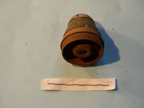 Corpo principale cilindrico e parte superiore a tronco di cono, a ghiere concentriche e calotta superiore; quattro fori complessivi sul corpo della spoletta; seconda ghiera graduata da 6 a 73.
