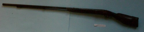 Monocolpo, accensione a luminello. Canna cilindrica e ottagonale in culatta, con raccordo decorato ad incisione a motivi floreali tra le due parti e fissata con fascetta alla cassa e con vite a legno al codolo; mirino a grano in volata. Presenti il calciolo, il guardamano, due magliette porta cinghia e la bacchetta. Fornimenti sagomati per decorazione; calcio e cassa decorati a squame, coccia a testa di animale e poggiaguancia sulla pala sinistra con rosetta.