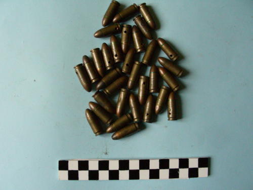 Bossolo di forma cilindrica con fondello; proiettile di forma conica con punta arrotondata.