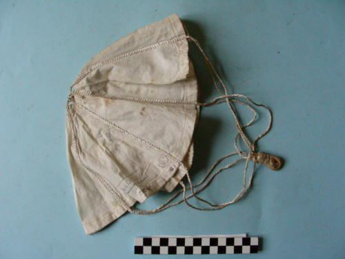 Cupola di forma circolare, con foro al centro, divisa in otto settori da cordicelle che si riuniscono a formare un nodo che trattiene l'anello di aggancio.