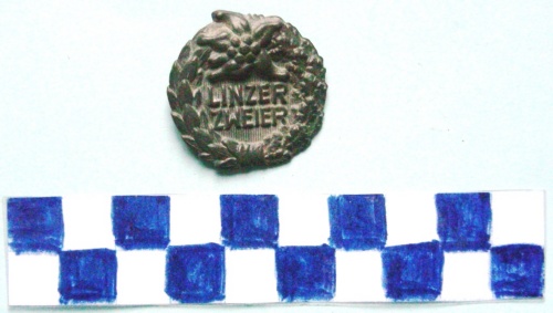 Di forma circolare, sulla parte superiore, in rilievo una stella alpina, al centro iscrizione circondata da rami d'alloro e di quercia.