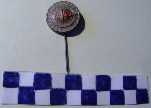 A forma di scudo abissino, decorato, dorato. Entro circonferenza centrale più piccola, fascio littorio dorato in rilievo tra le due croci greca e di Lorena incise di colore rosso. Iscrizione lungo la corona. Sul verso, spilla di fissaggio.