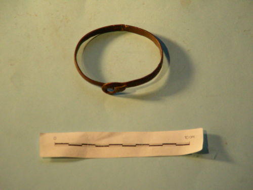 Di forma ovale, in due pezzi incernierati, con aggancio scolpito a forma di testa di serpente.