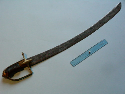 lama curva, ad un filo, punta e controfilo; liscia. Punta al dorso. Guardia a staffa. Ramo di guardia in unica fusione con le alette fermafodero, a losanga. Ramo di parata dritto, terminante in un pomello decorativo tipico. Cappetta lunga alla guardia, con una particolare sagomatura allargata alla parte alta. Bottone rotondo ribattuto al codolo. Impugnatura a settori, ingrossata al centro.