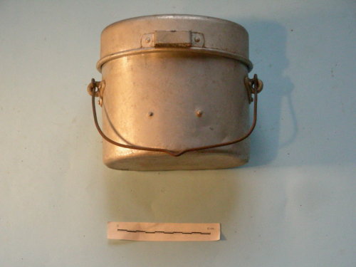 Manico in tondino inserito in due occhielli laterali fissati con rivetti. Coperchio con manico di fissaggio e placca di aggancio.