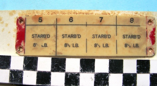 Rettangolo di colore bianco, quattro fori di fissaggio agli angoli, diviso in sei sezioni, le due esterne di colore rosso, con istruzioni.