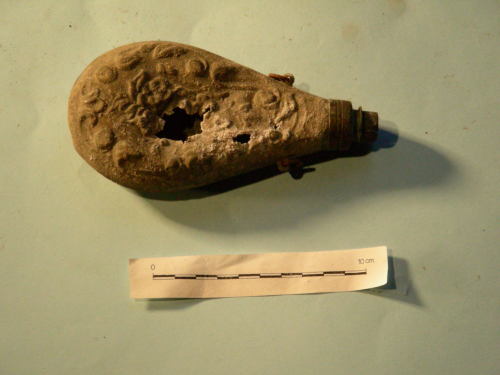 A valve simmetriche, con due anelli per correggiolo. Valve decorate simmetricamente a sbalzo a motivi floreali.