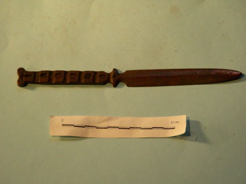 Lama dritta, a doppio filo, punta centrale arrotondata.