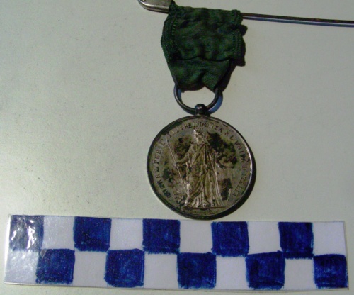 Di forma circolare. Sul recto, al centro in rilievo, figura allegorica dell' Italia in piedi, volta a sinistra con lancia e scudo Savoia. Iscrizione lungo la corona. Sul verso, iscrizione tra stella raggiante a cinque punte e trionfo di bandiere. Nastrino di colore verde.