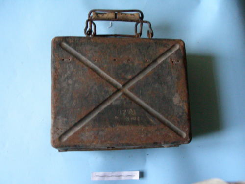 A parallelepipedo, apribile a metà tramite una cerniera fissata con rivetti alla base; scanalature a "X" su entrambe le facce maggiori. Manico rivestito, ad incastro, fissato con rivetti alla parte superiore. Interno con dieci fori di alloggiamento per le munizioni.