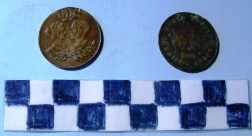 Di forma circolare. Sul recto, al centro, in rilievo, i busti accollati ed affrontati di Elena di Montenegro, con diadema e collare e di Vittorio Emanuele III in divisa, sormontati da corona e su rami d'alloro fermati da bottone. Sul verso, al centro, in rilievo gli stemmi affiancati di casa Savoia e del regno del Montenegro sotto stella a cinque punte. Iscrizioni lungo la corona ed entro cartiglio.