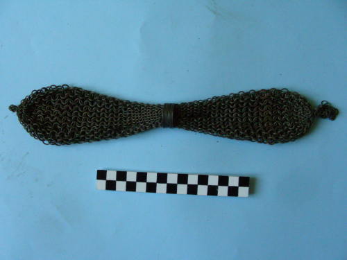 A doppia tasca, con apertura centrale e doppio anello a spirale per la chiusura. Costituito da maglia intrecciata, ad anelli di diametri differenti.