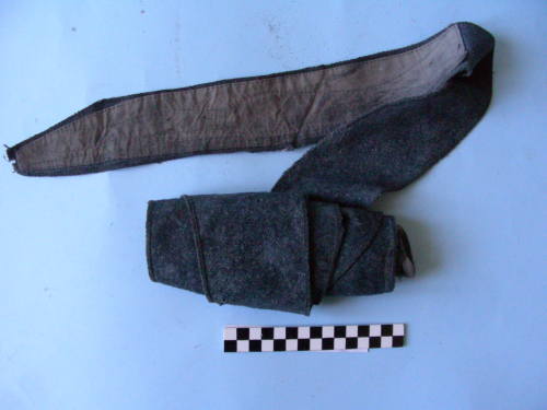 Striscia di dimensione variabile, di colore grigio-verde, con rinforzo ad una estremità e fascetta di fissaggio all'altra.