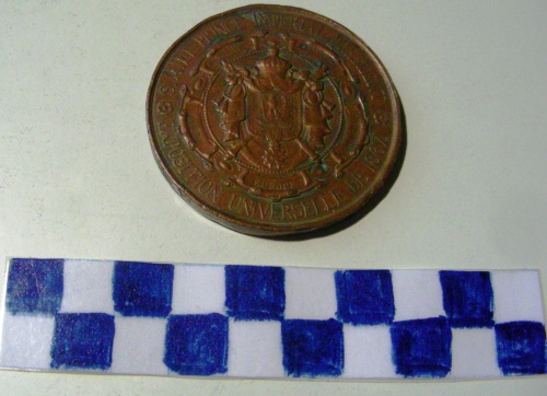 Di forma circolare. Sul recto, al centro, in rilievo, simbolo araldico dell'imperatore Napoleone III, circondato da cartigli con iscrizioni. Ulteriore iscrizione sulla corona. Sul verso, iscrizioni sulla corona ed entro la corona di fiori.