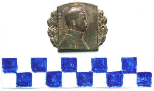 Di forma rettangolare con lato superiore arrotondato, con rami d'alloro ai lati. Al centro, in rilievo a destra il profilo di Carlo I. Iscrizione sul lato sinistro.