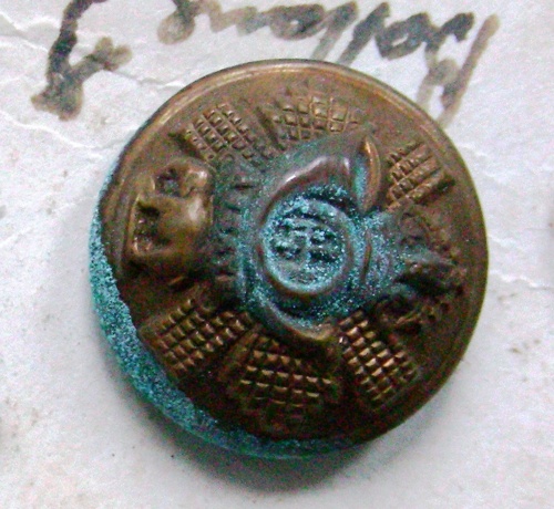 A forma semi sferica. Decorato a bassorilievo, croce di Sant'Andrea coperta da corona reale, corno da caccia, cartiglio ed elefante. Sotto la base un occhiello per il fissaggio.