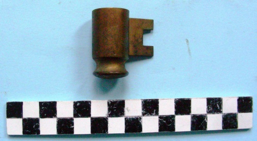 Tubo con rstringimento alla base a formare una manopola, con saldata una lastra a forma di "U".
