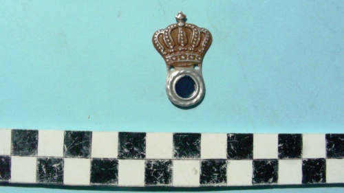 Cerchio di colore nero in corona d'alloro sormontato da corona di color marrone con croce sulla sommità.