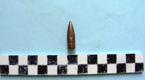 Incamiciato, di forma conica, con diametro crescente fino alla metà, poi decrescente con ogiva conica retta. anello di crampatura a circa un quarto. Base concava.