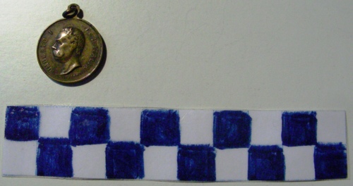 Di forma circolare. Sul recto, busto accollato a sinistra di re Umberto I. Iscrizione lungo la corona. Sul verso, iscrizioni. Anello all'appiccagnolo.