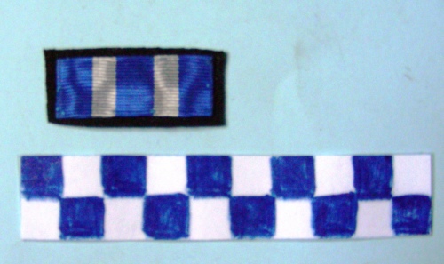 Su panno nero tre bande azzurre intervallate da due bianche di minor dimensione.