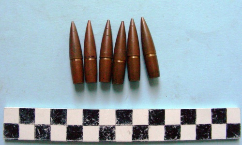 Incamiciato, di forma conica, con diametro crescente fino all'anello di crampatura a circa un terzo poi decrescente con ogiva conica retta.