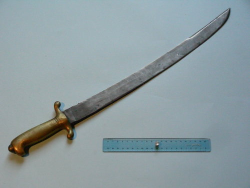 Lama curva, a un filo, punta al dorso con controfilo; liscia. Guardia a crociera a forma di "S". Bottone semisferico avvitato al codolo. Impugnatura in unica fusione con la guardia, liscia in ogni sua parte eccetto due scanalture estetiche che dividono l'impugnatura dalla guardia.