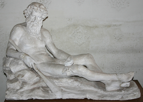 Si tratta del modello eseguito da Ceccon per l'Allegoria del fiume Brenta, parte costitutiva del Monumento a Pietro Paleocapa. Tale monumento fu una delle opere più ammirate dello scultore. L. Ferretto (L'arte e le opere di Luigi Ceccon scultore e architetto, "Il Veneto. Corriere di Padova", 16 maggio 1919) ricordandolo, pochi giorni dopo la scomparsa dell'artista, osservava: "Ammirato è il monumento di Paleocapa nella loggia esterna del Salone; parlante il busto del sommo idraulico, magistrali le classiche statue dei fiumi vigorosamente modellate, statue che il Barabino appellò vero capo-lavoro". L'uomo barbuto, disteso su un fianco ai bordi del corso d'acqua, reca quali attributi il timone e un mazzolino di foglie; corona il capo una ghirlanda di spighe.