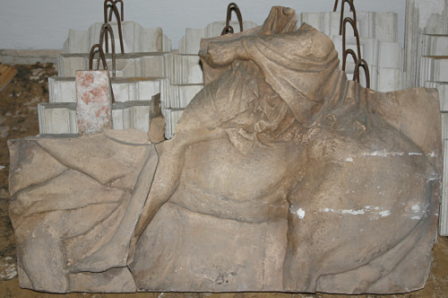 La condizione problematica dell'opera non consente una lettura appropiata. Il cavaliere, di cui rimane soltanto la parte inferiore, indossa abiti di gusto classico.
