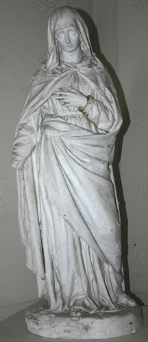 Distontosi soprattutto nell'esecuzione di statue o monumenti funerari, lo scultore padovano Giovanni Rizzo, in quest'occasione, affronta un tema a lui congeniale, che gli permette di indagare l'umano dolore e la divina pietà di questa addolorata dal capo mestamente reclinato e dagli occhi gonfi di pianto represso. L'ampia veste, oltre al volto delicato e triste, lascia affiorare le mani che sottolineano, nel gesto adottato, un'intima e sincera commozione.