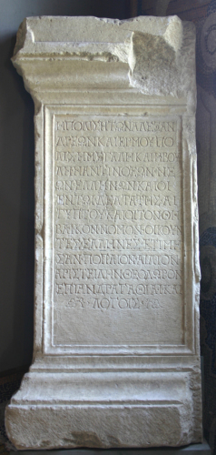 Si tratta di una copia della stele greca a Publio Elio Aristoide rinvenuta nel Palazzo di Piazzola sul Brenta, ora al Museo Maffei di Verona.