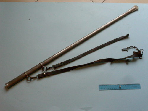 a due campanelle, con bocchetta allargata. Puntale crestato. Sono presenti le cinghie di sospensione e la dragona.