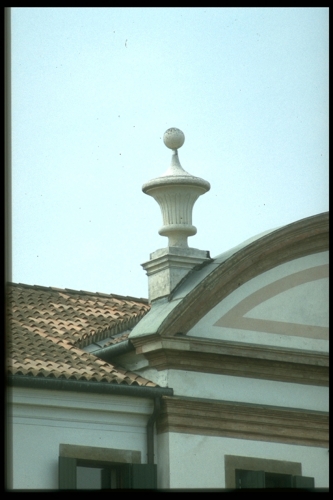 La villa si articola su due piani e quindici assi, mostra la facciata principale a nord-ovest e segue un forte sviluppo orizzontale. Il settore centrale è risaltato da un leggero aggetto sovrastato da un frontone ad arco ribassato. Una breve scalinata sottolinea il portale d'ingresso ad arco a tutto (...)