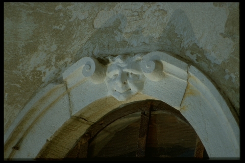 La cornice è presente intorno a tutti i fori finestra ovoidali delle adiacenze alla villa. Al centro, nella parte superiore, è scolpito un mascherone.