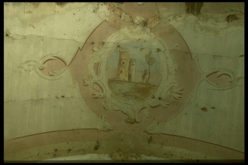 Torri con leone rampante su albero entro cornice