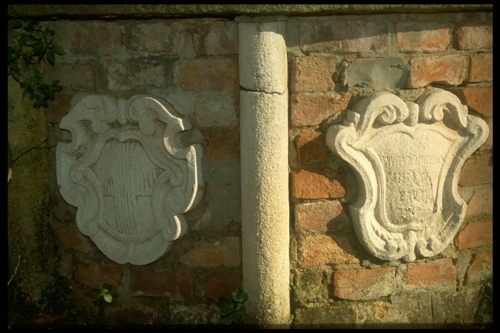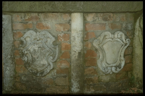 Basamento in mattoni; corpo cilindrico in mattoni ripartito in otto specchiature da pilastrini in pietra all'interno delle quali si trovano altrettanti scudi accartocciati contenenti iscrizioni o armi gentilizie; sovrapposto corpo cilindrico; copertura in ferro; fastigio in ferro battuto con carrucola.