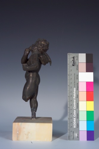 si tratta di un bronzetto raffigurante un putto di pregevole fattura del XVI o XVII secolo di ambito veneto; secondo Sciré Nepi (1978) è riconoscibile la "maniera" di Nicolò Roccatagliata. Fu scoperto, secondo Levi (1888), in uno scavo del 1887 effettuato a Santa Cristina.